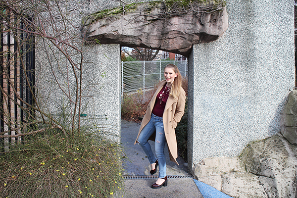 Vintage Camel Coat Ripped Jeans Chapeau Graffiti