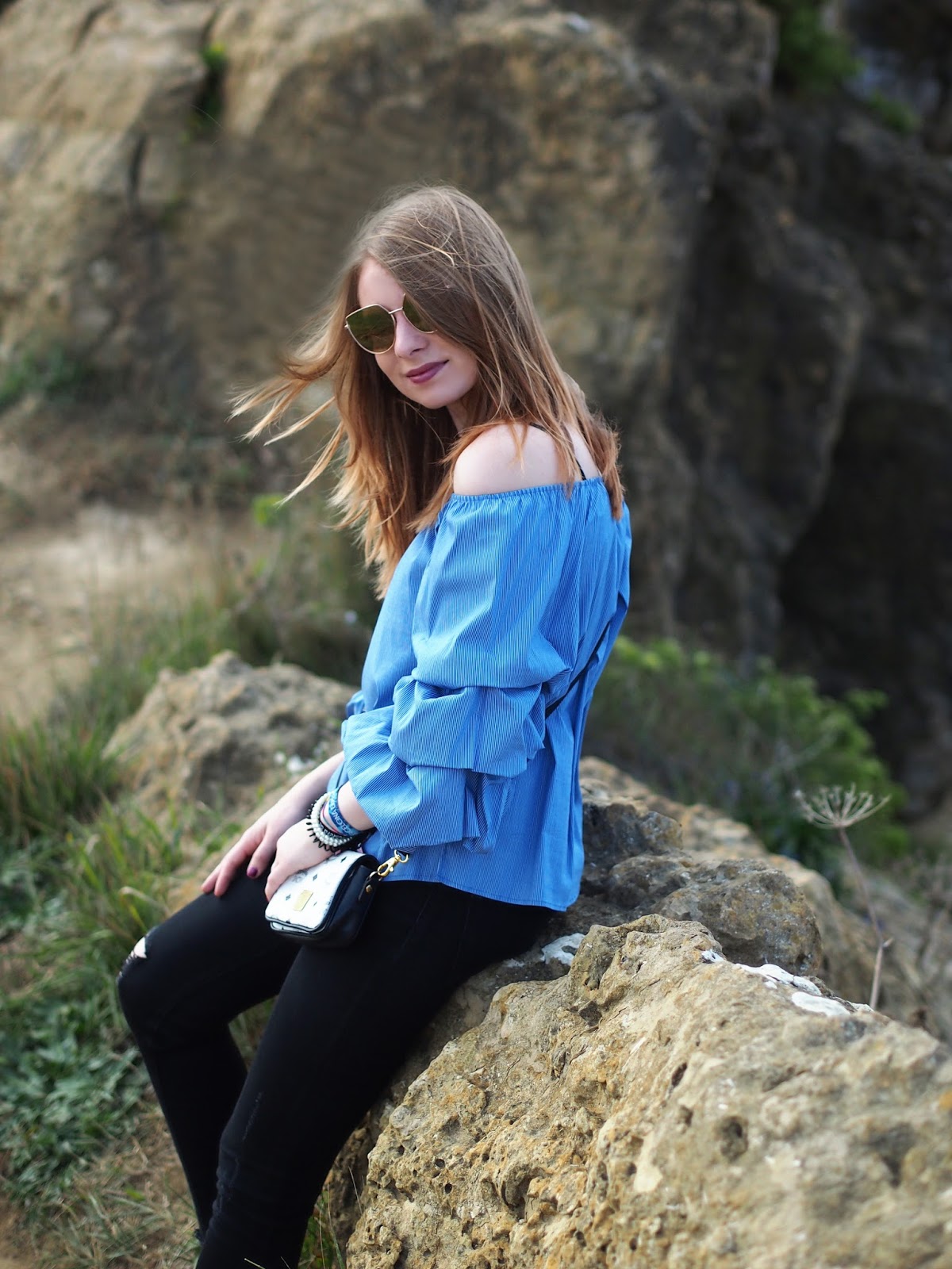 Uber Die Angst Der Ideenlosigkeit Outfit Blaue Volant Bluse